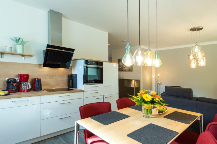 Wohnzimmer, 2 x Schlafzimmer, Küche, 2 x Dusche/WC |