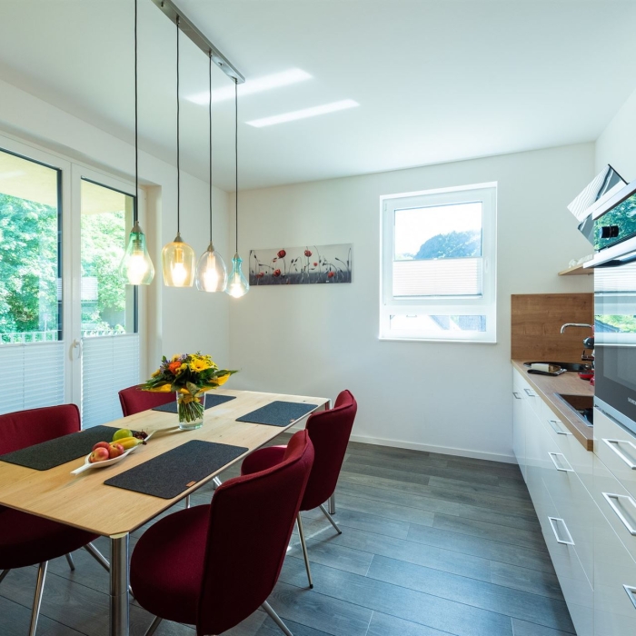 Wohnzimmer, 2 x Schlafzimmer, Küche, 2 x Dusche/WC |
