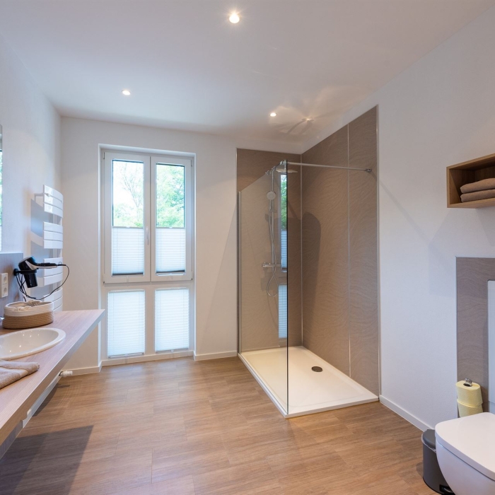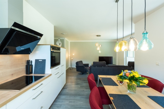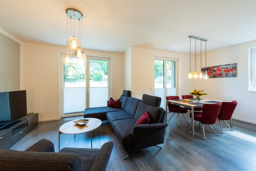Wohnzimmer, 2 x Schlafzimmer, Küche, 2 x Dusche/WC |