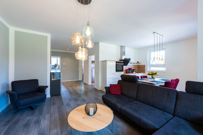 Wohnzimmer, 2 x Schlafzimmer, Küche, 2 x Dusche/WC |