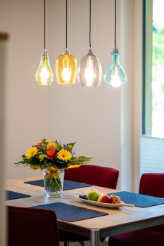 Nichtraucherwohnung, TV, Radio, Telefon, Küche mit Spülmaschine und Herd, Parkplatz am Haus, Waschmaschine und Trockner im Gemeinschaftsraum gegen Gebühr, Babybett und Kinderstuhl gegen Gebühr, Fahrradabstellraum. |