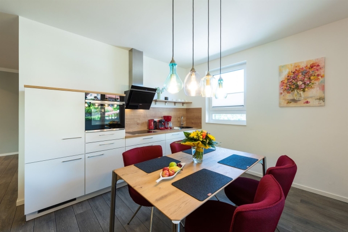 Nichtraucherwohnung, TV, Radio, Telefon, Küche mit Spülmaschine und Herd, Parkplatz am Haus, Waschmaschine und Trockner im Gemeinschaftsraum gegen Gebühr, Babybett und Kinderstuhl gegen Gebühr, Fahrradabstellraum. |